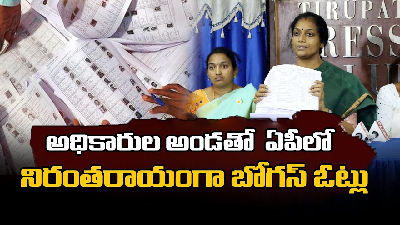 చంద్రగిరి నియోజకవర్గంలో నిరంతరాయంగా బోగస్ ఓట్లు నమోదవుతున్నాయని చిత్తూరు జిల్లా తెలుగుదేశం పార్టీ ఇన్చార్జ్, చంద్రగిరి నియోజకవర్గ ఎమ్మెల్యే అభ్యర్థి పులివర్తి నాని సతీమణి పులివర్తి సుధారెడ్డి ఆరోపించారు. శనివారం తిరుపతి ప్రెస్ క్లబ్ లో ఆమె మాట్లాడుతూ తెలంగాణ ఎన్నికలు ముగిసిన తర్వాత అక్కడి నుంచి వచ్చిన ఎమ్మెల్యే చెవిరెడ్డి భాస్కర్ రెడ్డి 5వ తేదీ నుంచి 9వరకు ఫామ్ 6 ద్వారా 10వేల ఓట్లు నమోదుకు దరఖాస్తులు చేయించారని ఆరోపించారు. ఇన్ని వేల దరఖాస్తులు ఎలా వస్తున్నాయని అధికారులను ఆమె సూటిగా ప్రశ్నించారు. 6 నెలలుగా పోరాటం చేయడంతో 22వేలు రిజెక్ట్ చేశారని, ఇప్పుడు మళ్లీ 10వేలు దరఖాస్తులు కొత్తగా పుట్టుకొచ్చాయన్నారు.